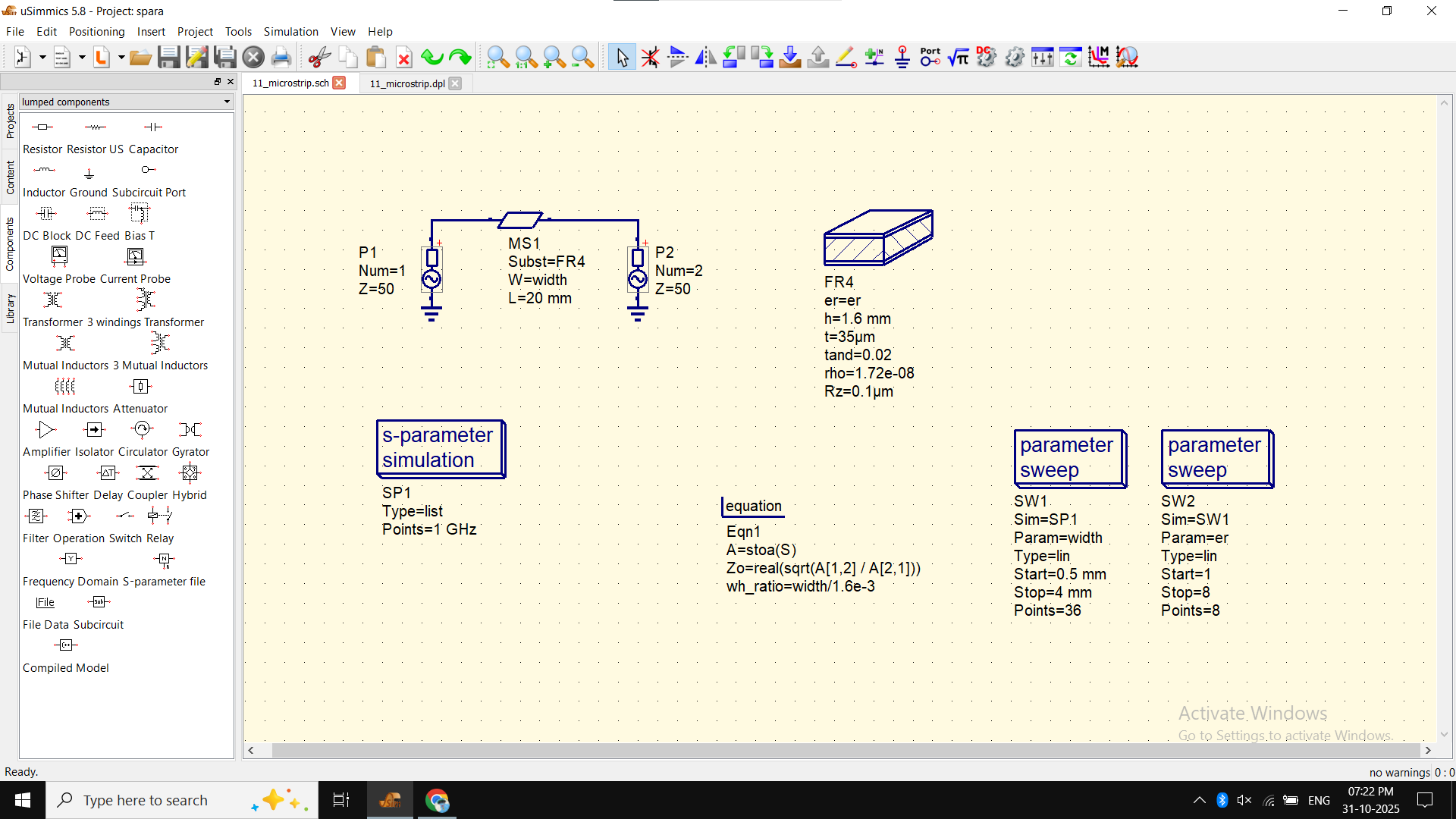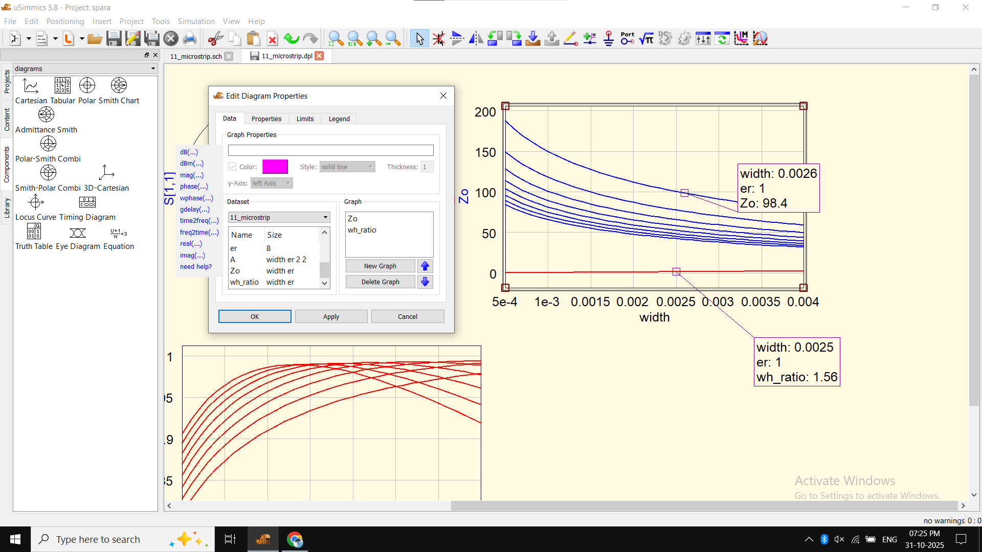 I’m working on the microstrip simulation and I’m stuck on the final plot. I am trying to plot Zo vs W/h .I am sweeping the width and calculating wh_ratio in an equation, but my graph’s X-axis stays as width and I can’t figure out how to change it to wh_ratio. When I am plotting Zo vs wh_ratio getting weird graph. I have attached the image for reference. Please help